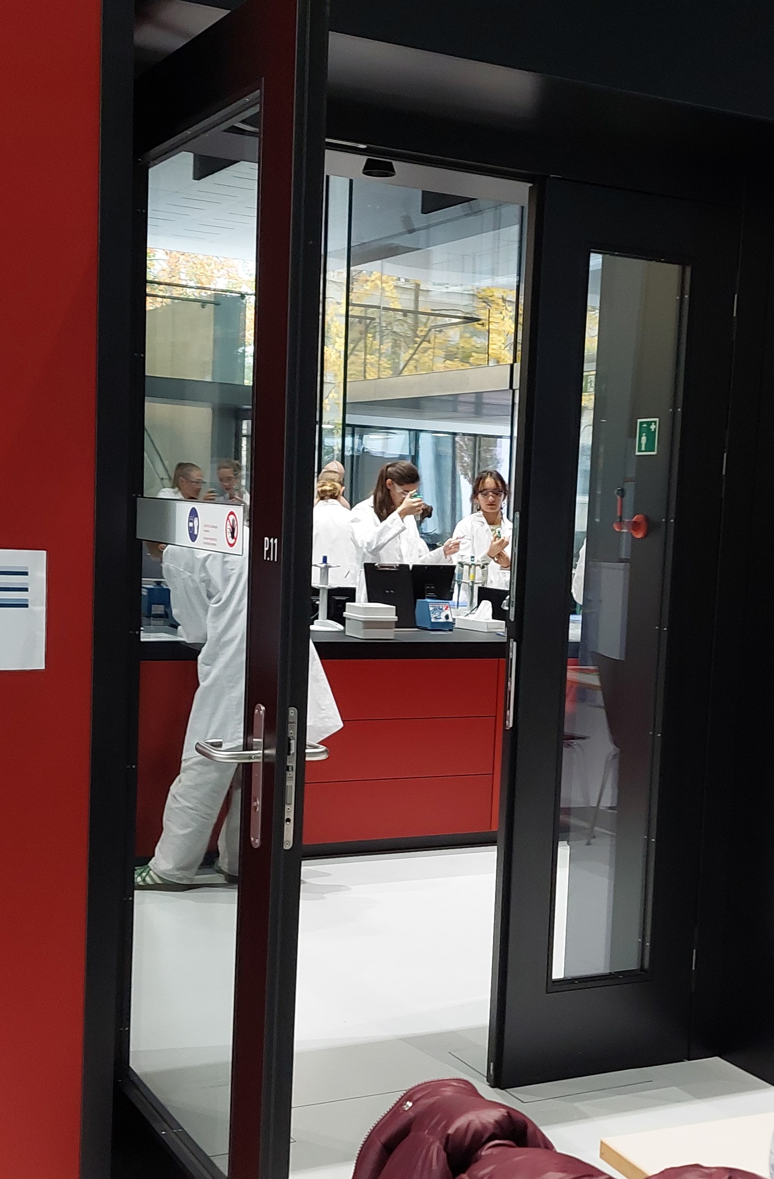 Die Schüler und Schülerinnen verbrachten einen ganzen Tag im Labor, wo sie verschiedene Experimente durchführten, um ihre eigene DNA auf bestimmt Gene hin zu untersuchen.