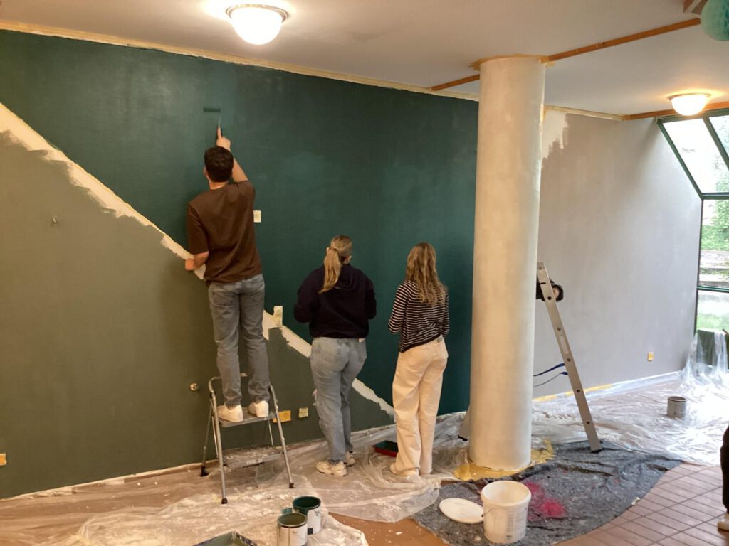Bereits im letzten Schuljahr waren viele fleißige Hände am Werk: Während der Projekttage leisteten 15 Schülerinnen und Schüler zusammen mit Frau Juliane Knefelkamp und Herrn Dominik Volz ganze Arbeit. Es wurden die Wände neu gestrichen, Möbel wurden montiert und der ganze Raum erhielt eine neue Dekoration.